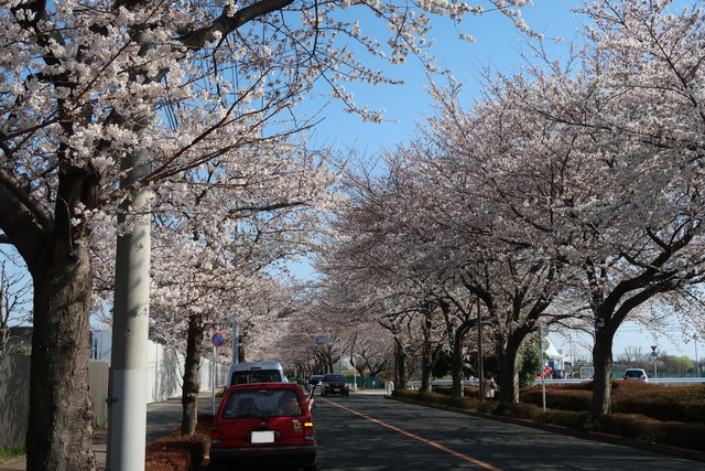 帰りに通りがかると、調布飛行場沿いの大沢グラウンド通りの桜もほぼ満開でした。