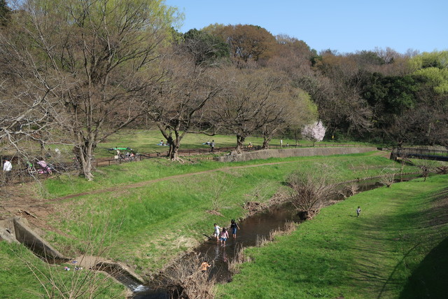 野川公園を東西に通っている東八通り(都道14号)の上の陸橋を越えて、公園の北部にいくと、昔懐かしい感じの野川にいけます。